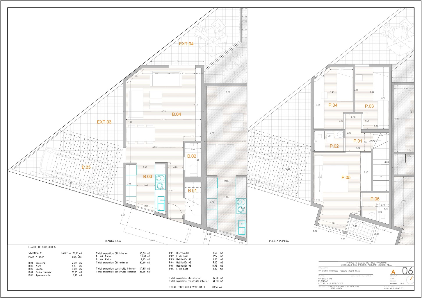 + Separación de viviendas cumpliendo aislamiento térmico acústico vigente del Código Técnico de Edificación.
